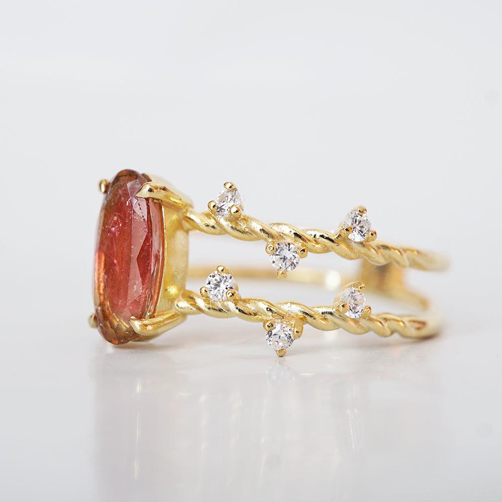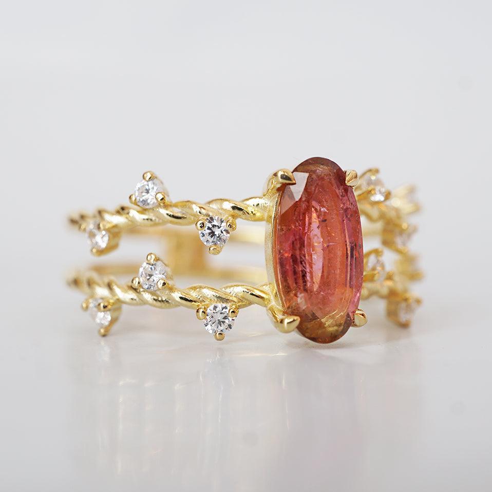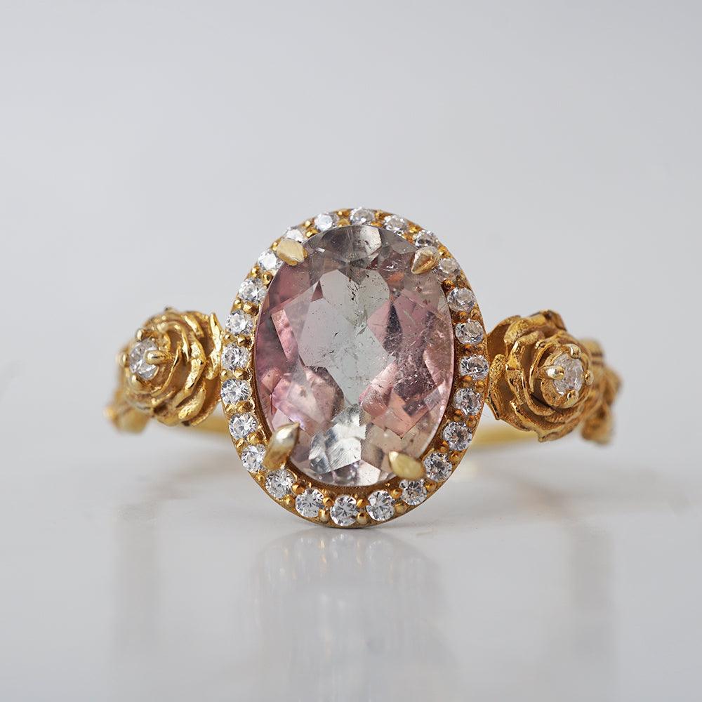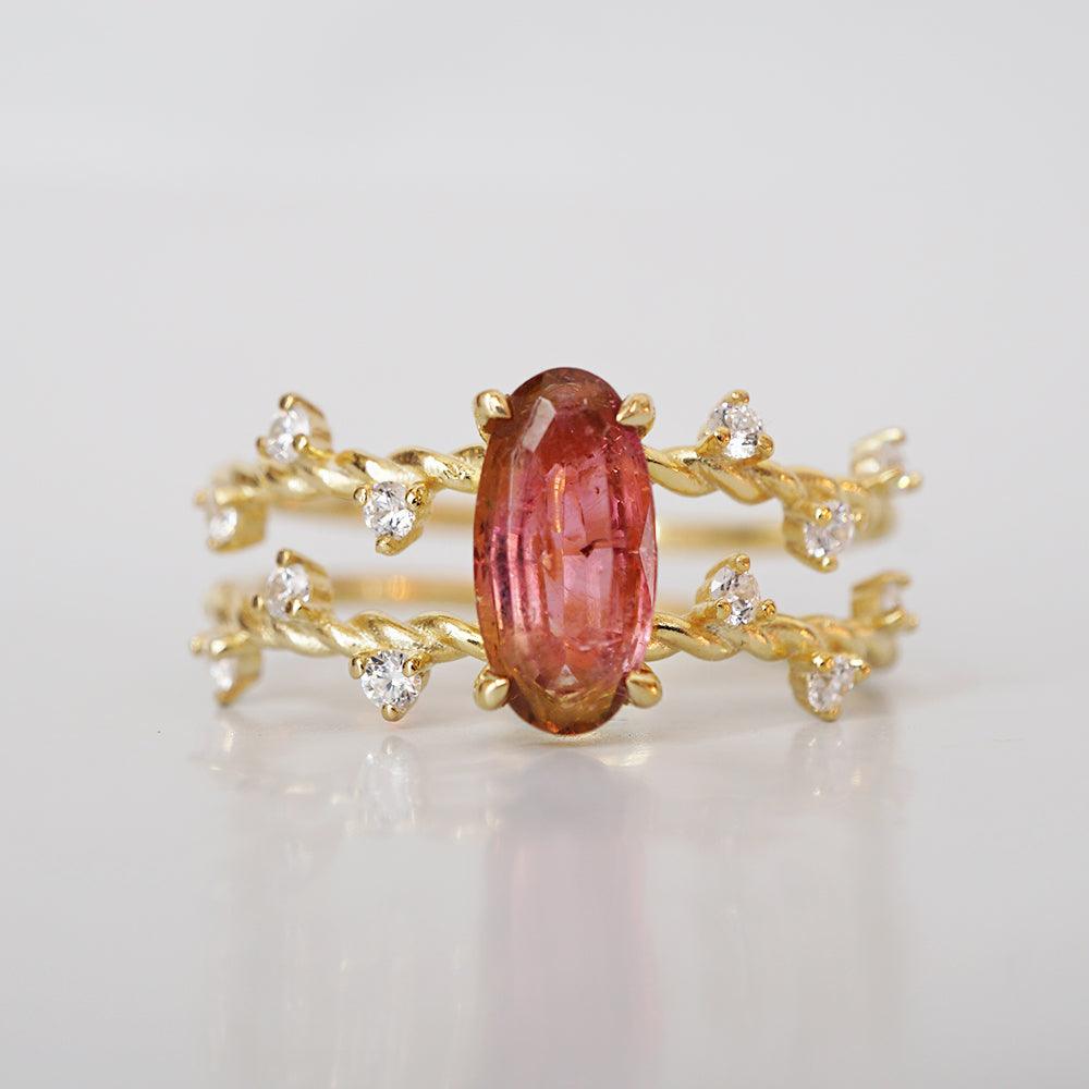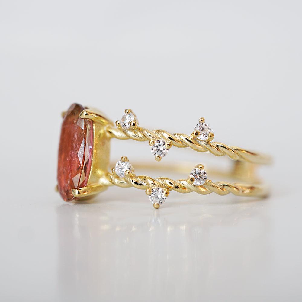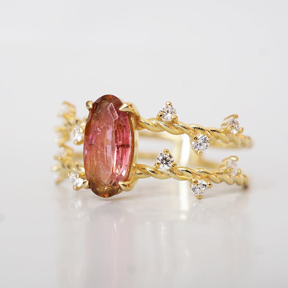 One Of A Kind: Watermelon Tourmaline Rose Diamond Ring in 14K and 18K Gold -
