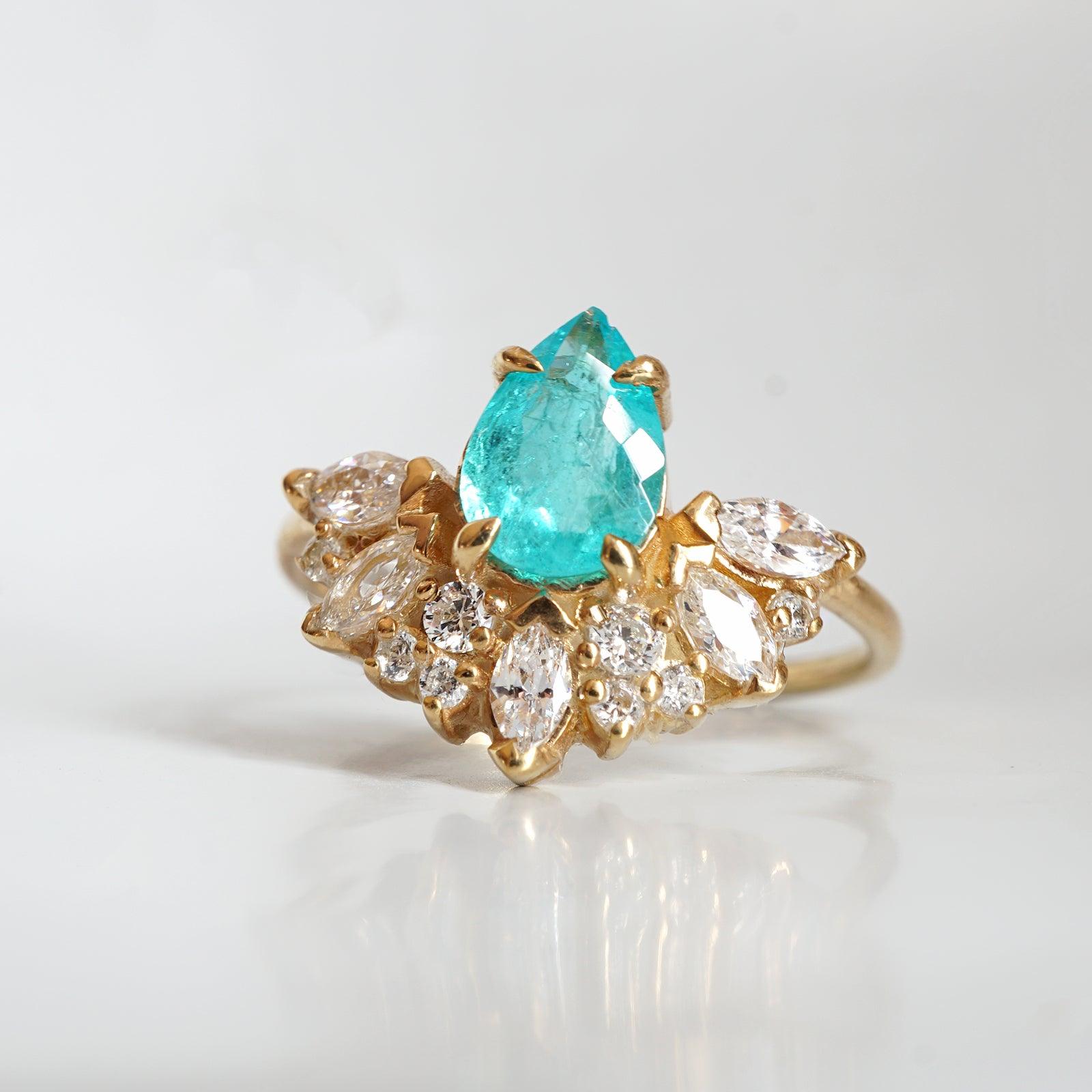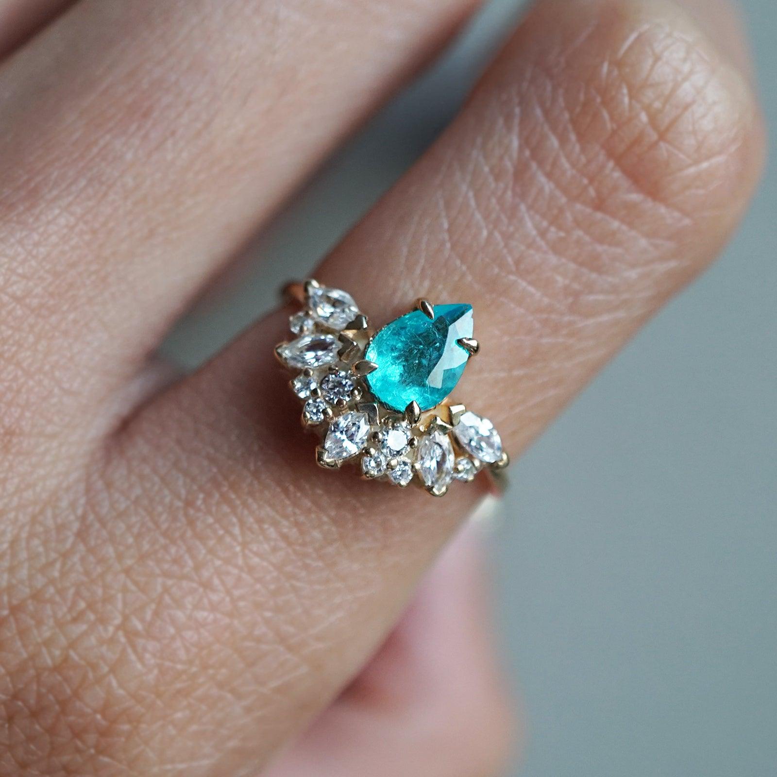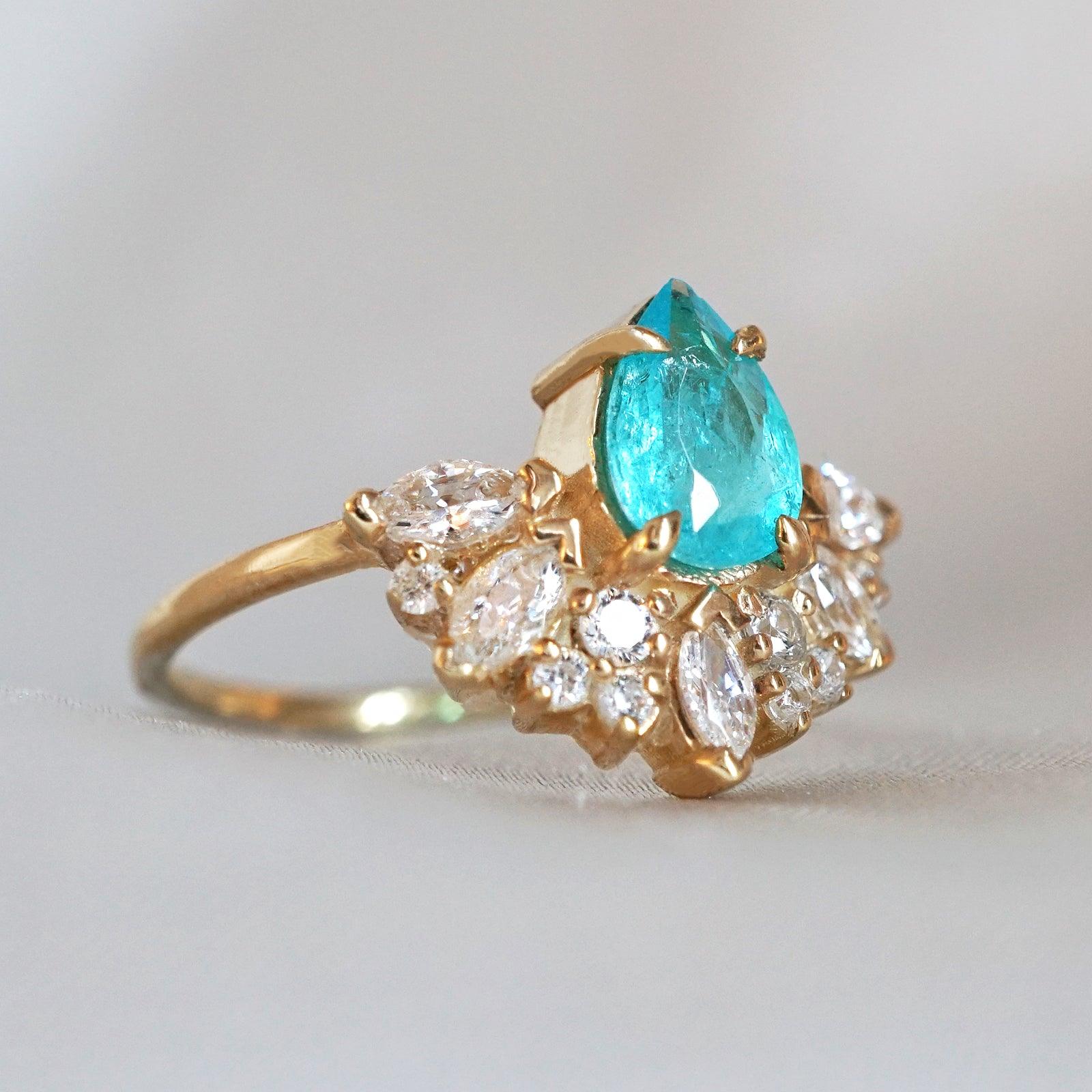 One Of A Kind: Shield Teal Sapphire Noor Diamond Ring in 14K and 18K Gold -