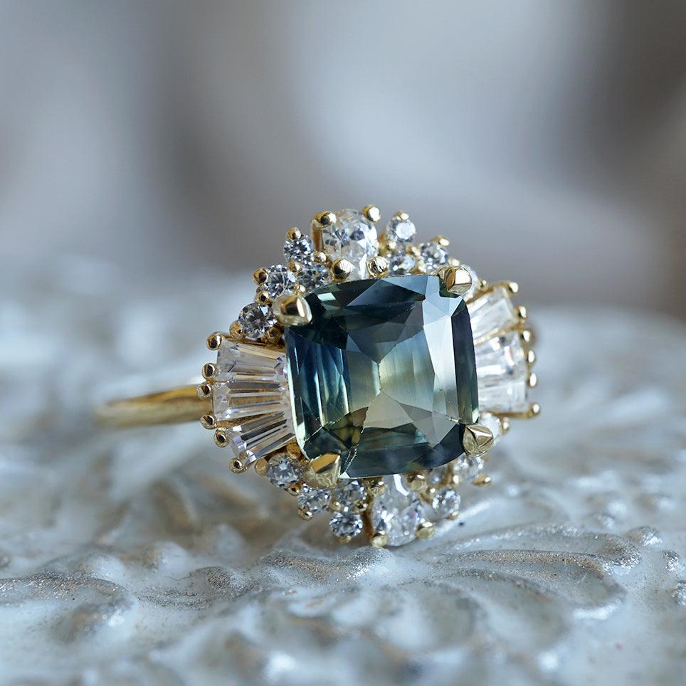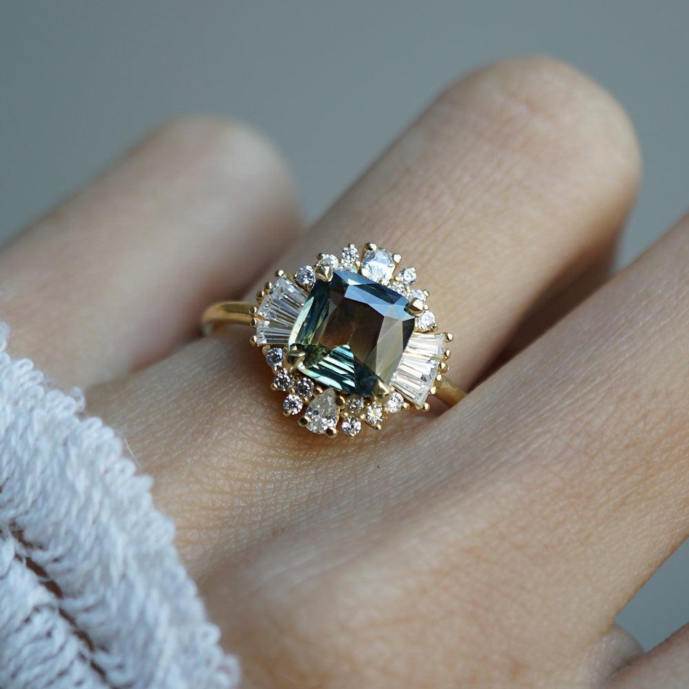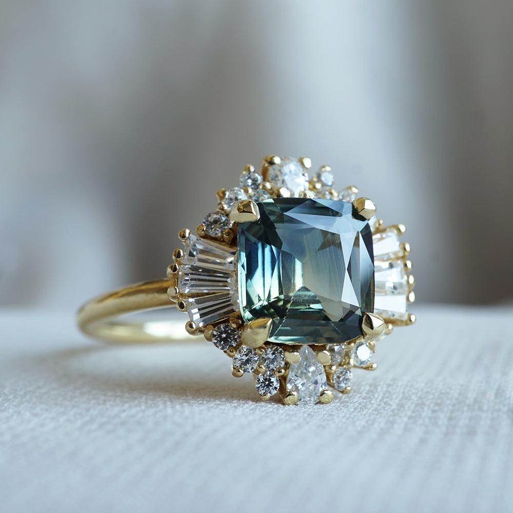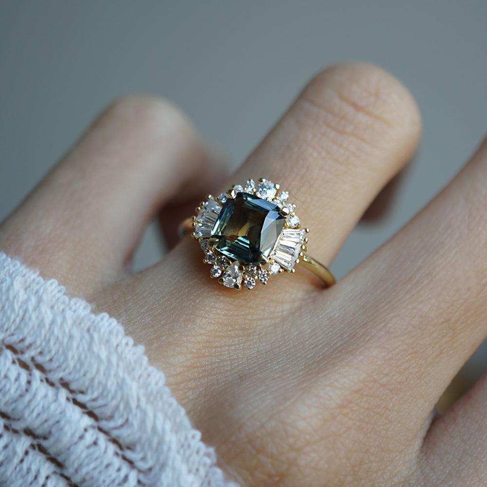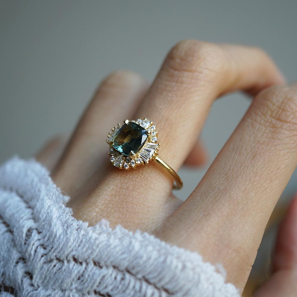 One Of A Kind: Nyx Teal Sapphire Ring in 14K and 18K Gold -