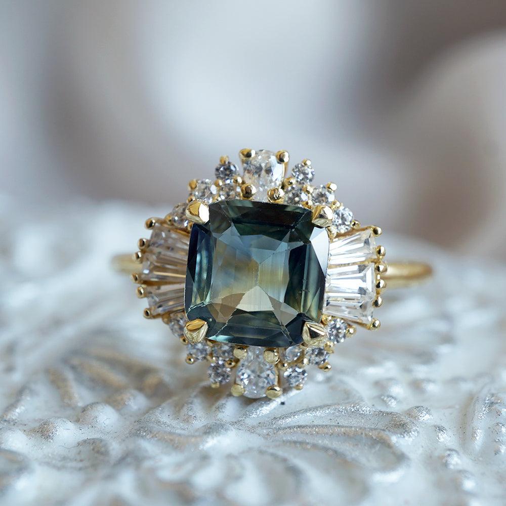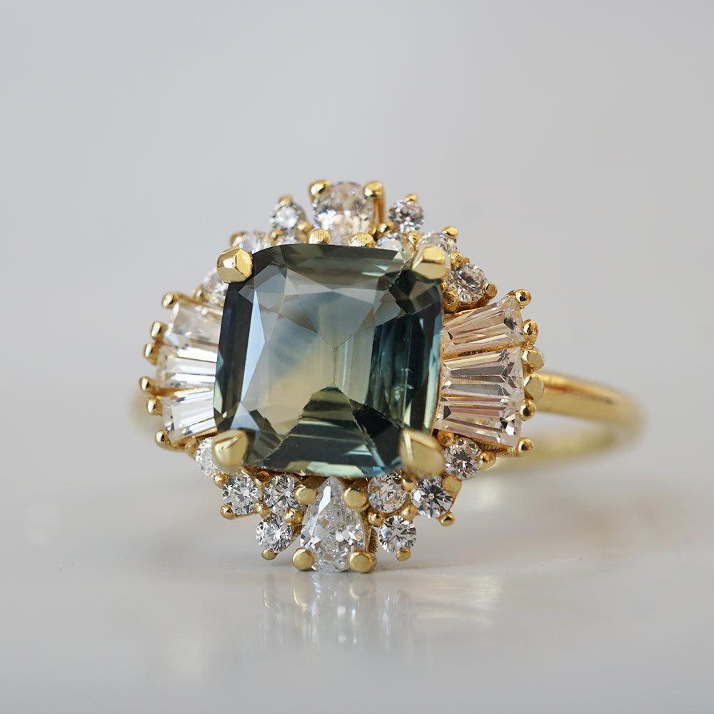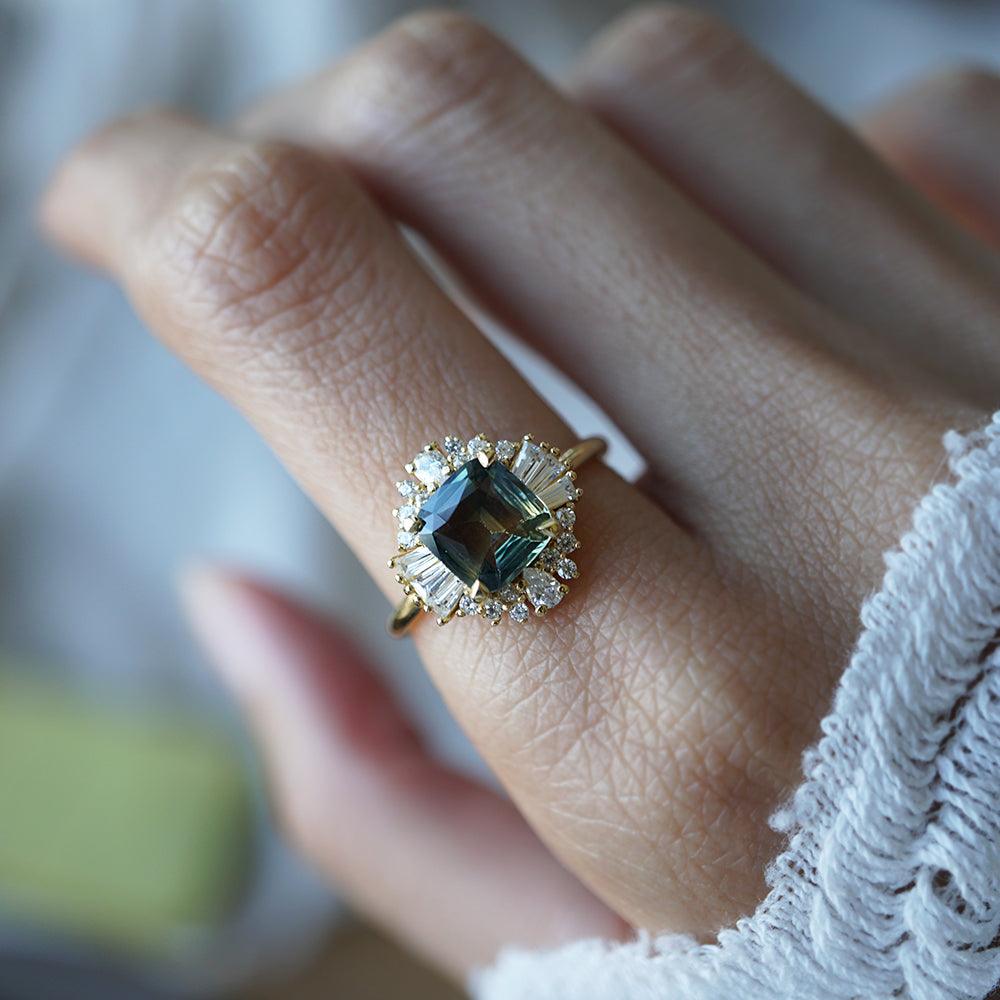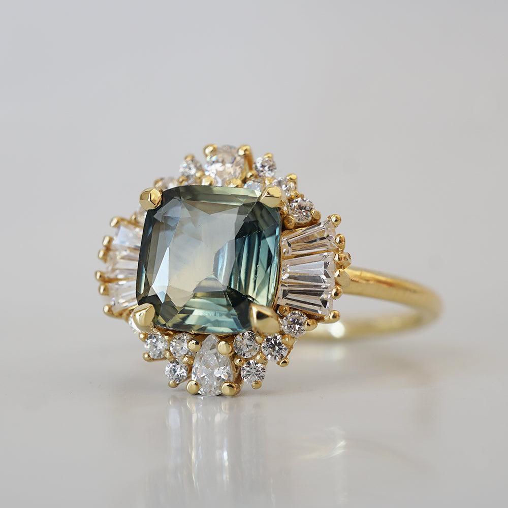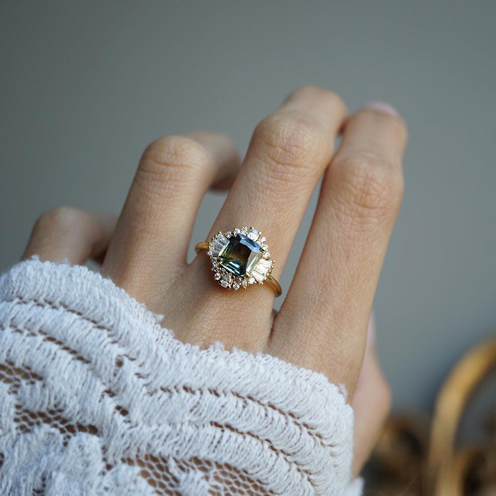 One Of A Kind: Nyx Teal Sapphire Ring in 14K and 18K Gold -