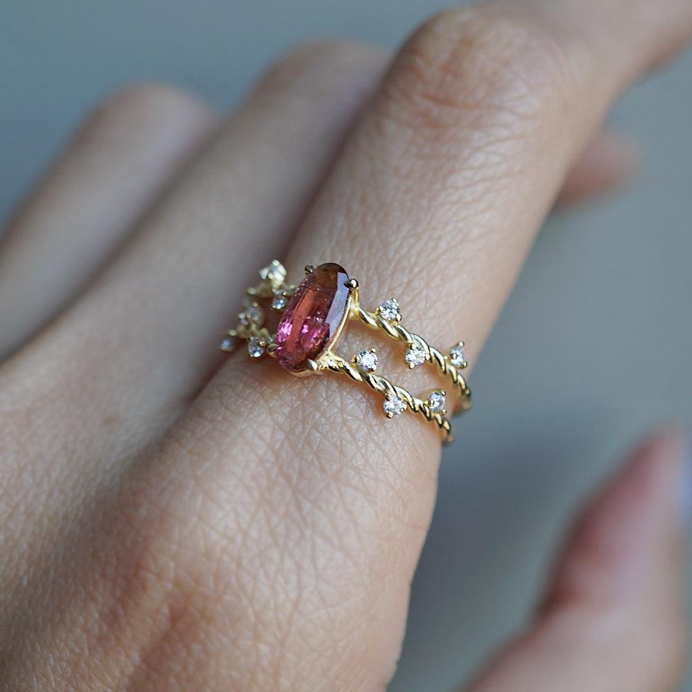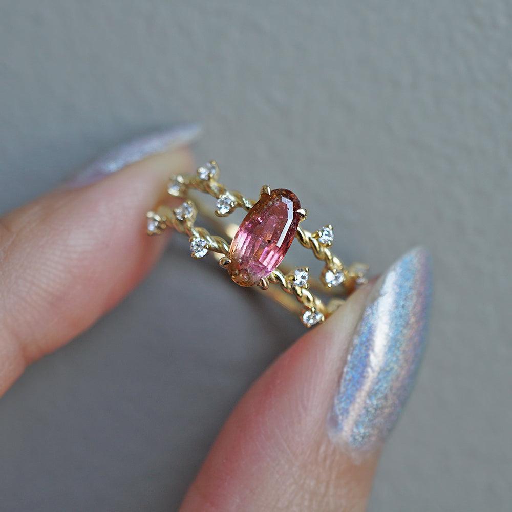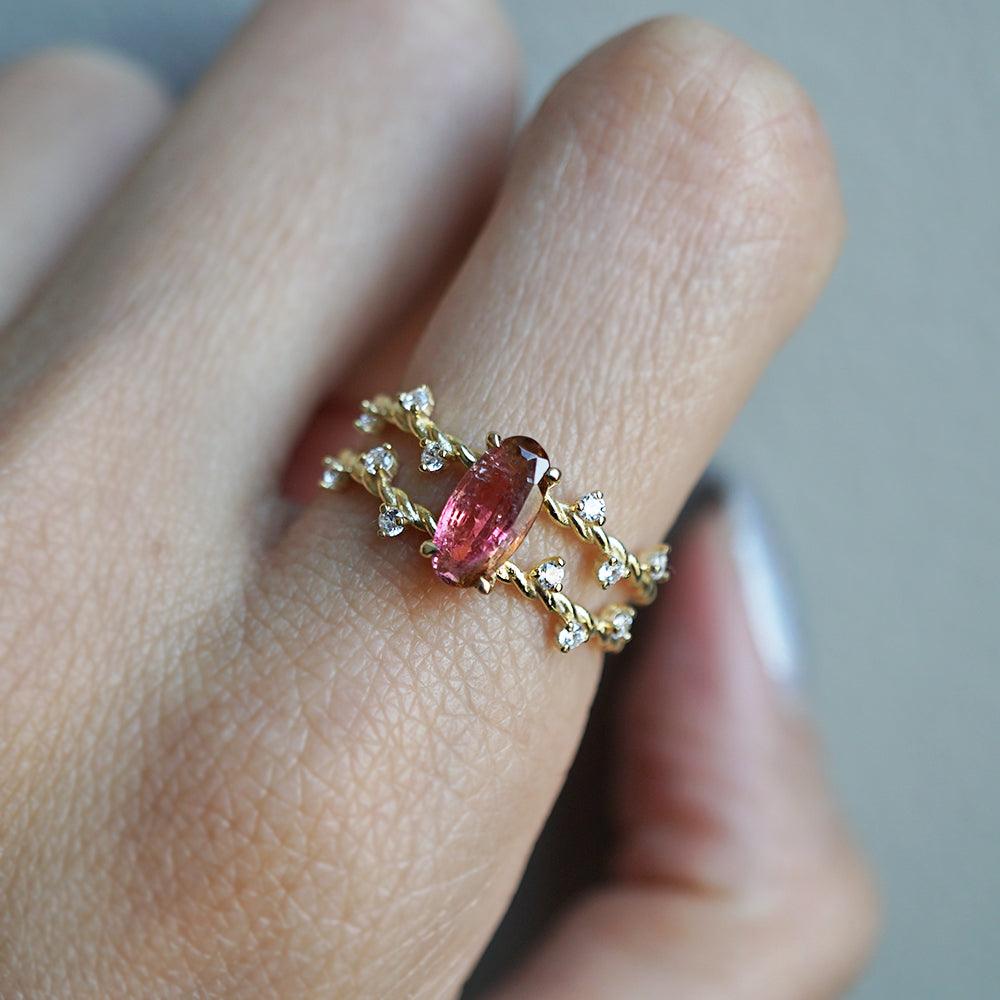 One Of A Kind: Watermelon Tourmaline Rose Diamond Ring in 14K and 18K Gold