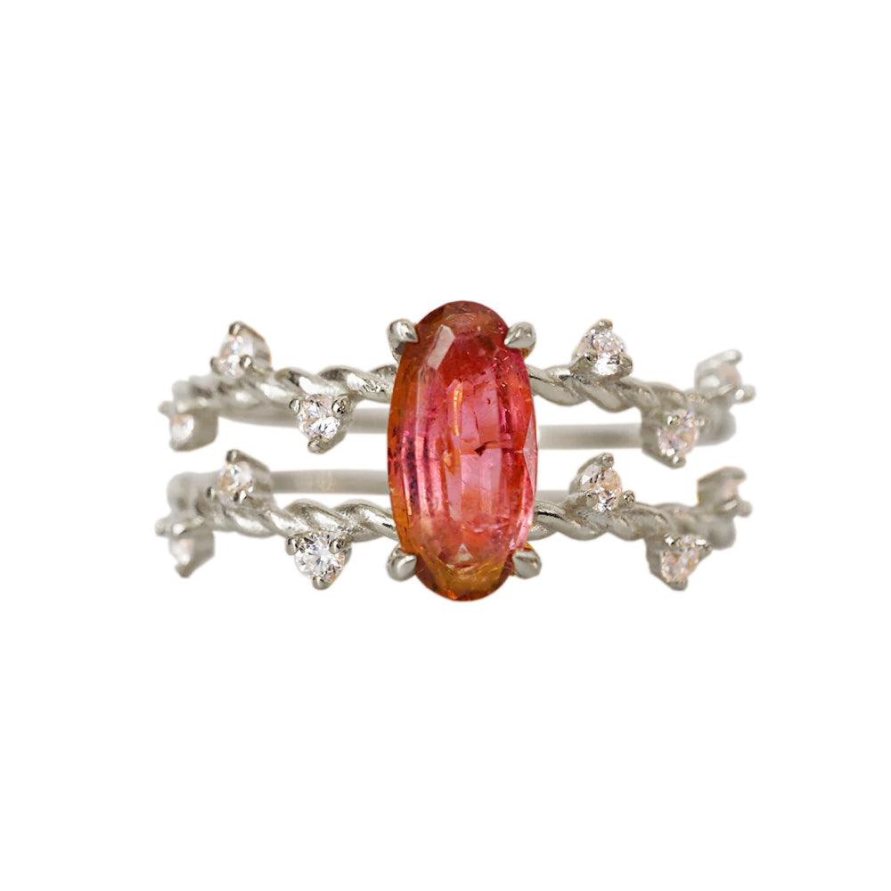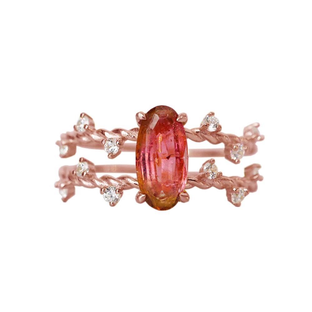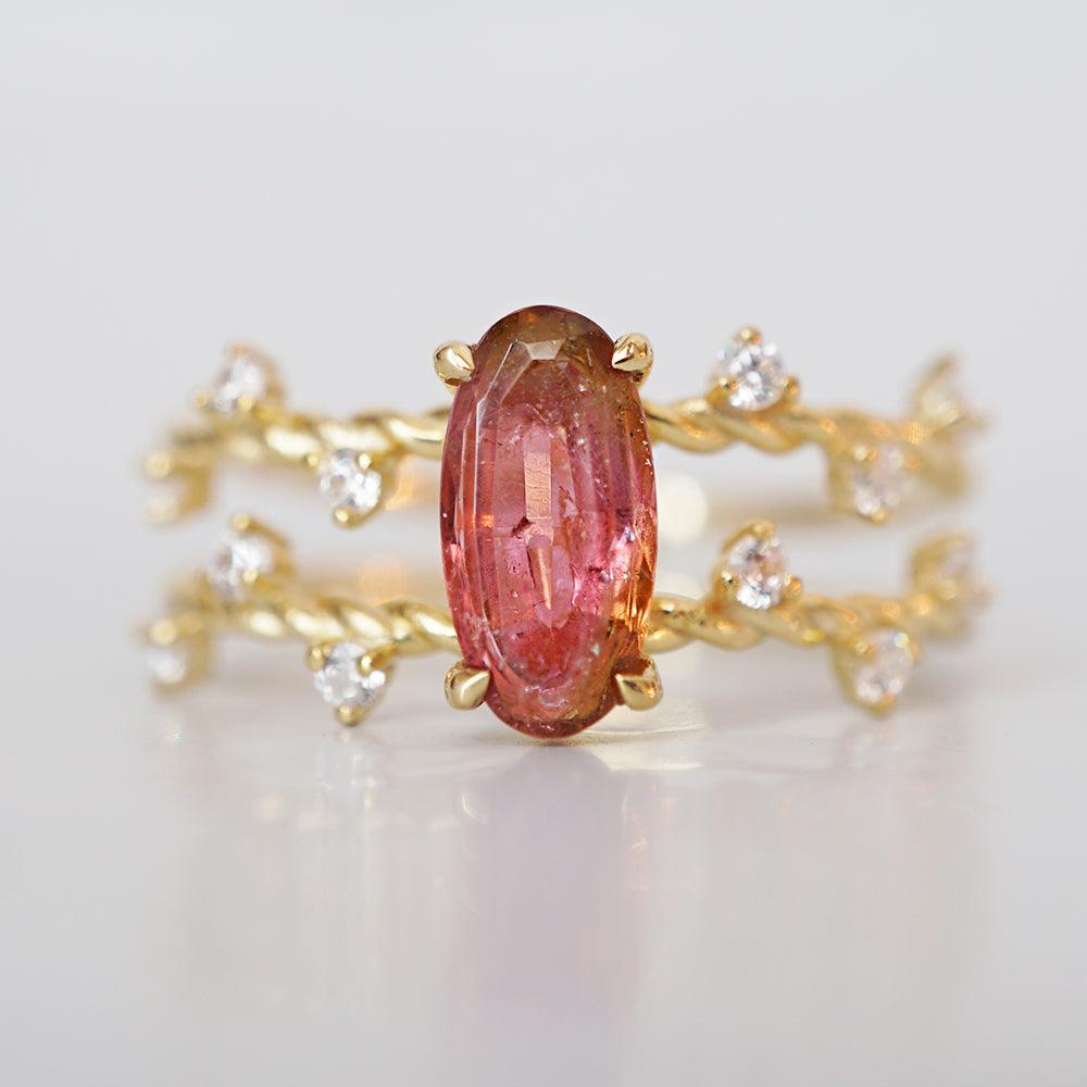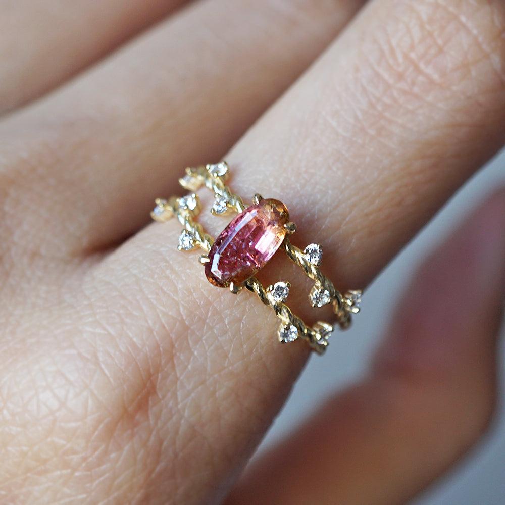 One Of A Kind: Watermelon Tourmaline Rose Diamond Ring in 14K and 18K Gold