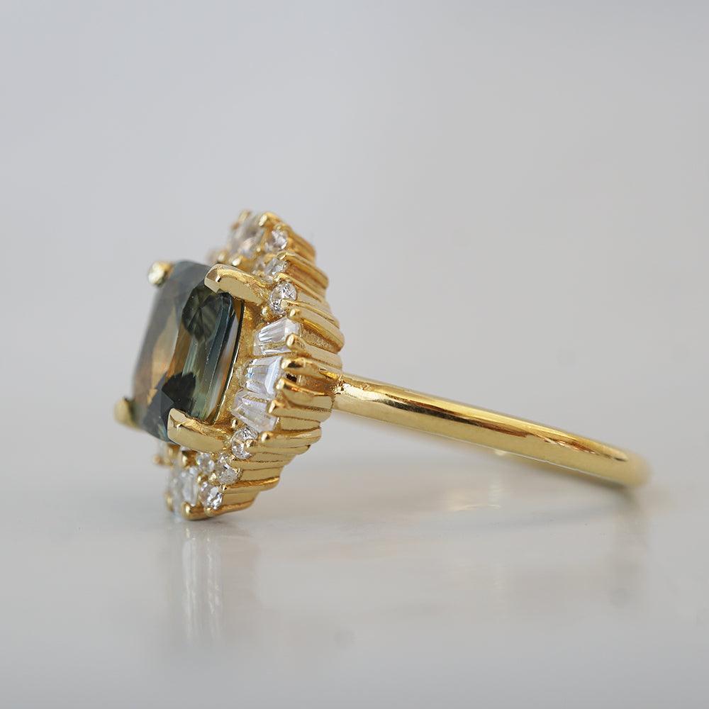 One Of A Kind: Shield Teal Sapphire Noor Diamond Ring in 14K and 18K Gold